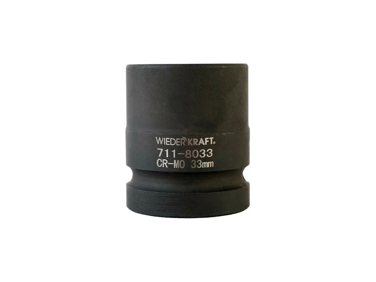 Ударная головка WiederKraft WDK-711-8033 (33 мм) с посадочным квадратом 1? и 6-гранным рабочим профилем. Выполнена из высококачественной хром-молибденовой стали 42 CrMo. Включения хрома и молибдена делают изделие прочным, устойчивым к нагрузкам и деформациям.