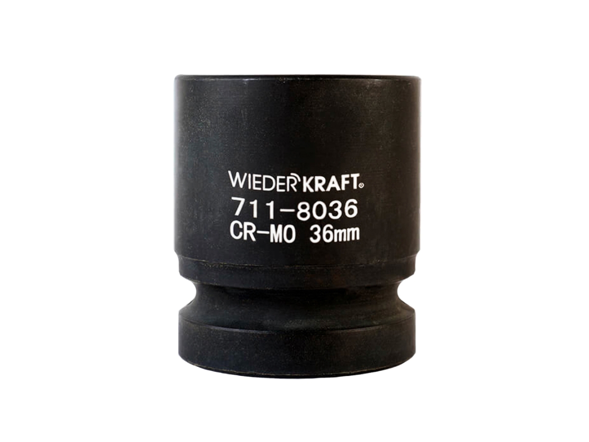 Ударная головка WiederKraft WDK-711-8036 (36 мм) с посадочным квадратом 1″ и 6-гранным рабочим профилем. Выполнена из высококачественной хром-молибденовой стали 42 CrMo. Включения хрома и молибдена делают изделие прочным, устойчивым к нагрузкам и деформациям.