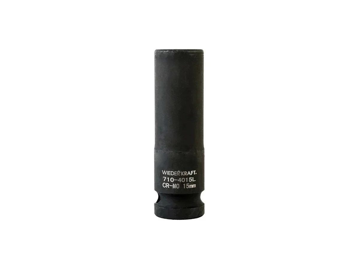 Глубокая ударная головка WiederKraft WDK-710-4015L (15 мм) с посадочным квадратом 1/2? и 6-гранным рабочим профилем. Выполнена из высококачественной хром-молибденовой стали 42 CrMo. Включения хрома и молибдена делают изделие прочным, устойчивым к нагрузкам и деформациям.