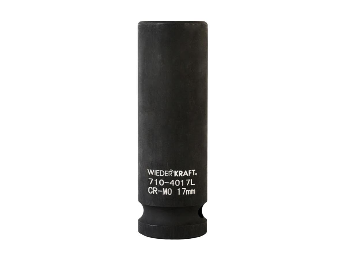 Глубокая ударная головка WiederKraft WDK-710-4017L (17 мм) с посадочным квадратом 1/2″ и 6-гранным рабочим профилем. Выполнена из высококачественной хром-молибденовой стали 42 CrMo. Включения хрома и молибдена делают изделие прочным, устойчивым к нагрузкам и деформациям.
