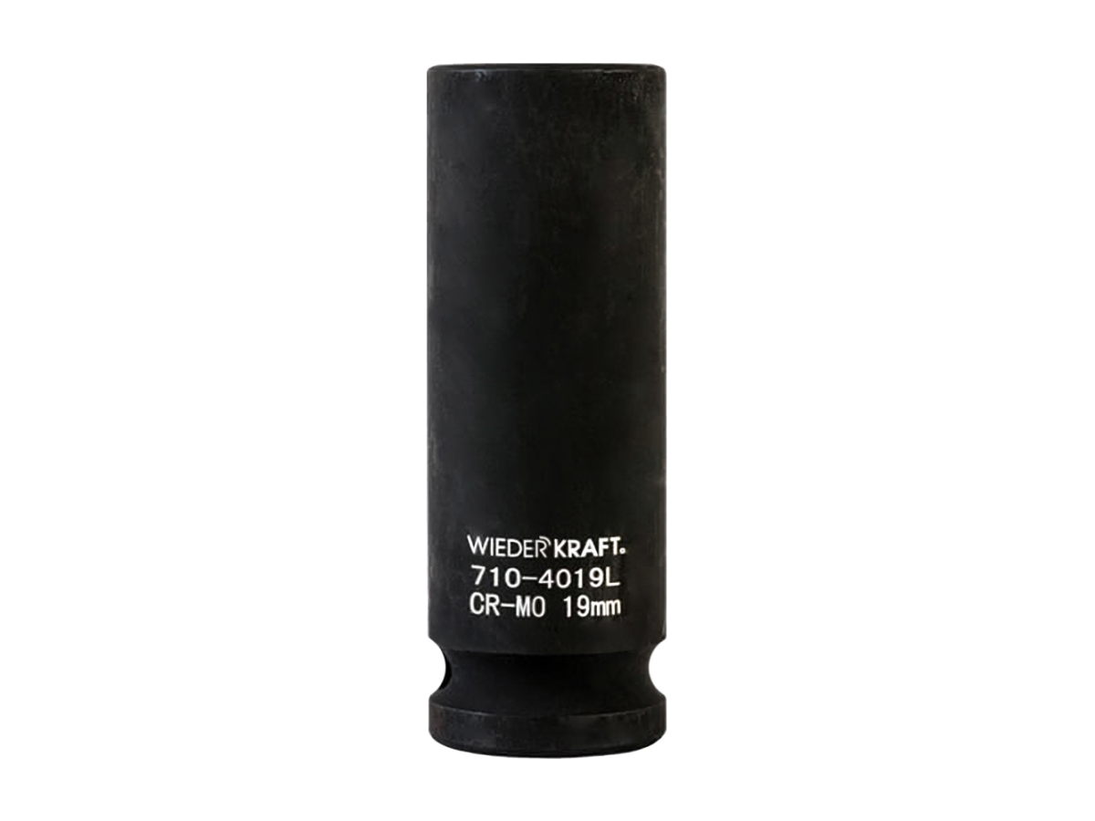 Глубокая ударная головка WiederKraft WDK-710-4019L (19 мм) с посадочным квадратом 1/2? и 6-гранным рабочим профилем. Выполнена из высококачественной хром-молибденовой стали 42 CrMo. Включения хрома и молибдена делают изделие прочным, устойчивым к нагрузкам и деформациям.