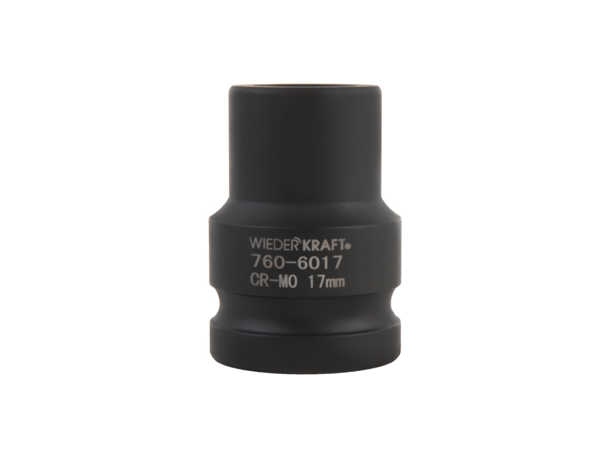 Ударная головка WiederKraft WDK-710-6017 (17 мм) с посадочным квадратом 3/4″ и 6-гранным рабочим профилем. Выполнена из высококачественной хром-молибденовой стали 42 CrMo. Включения хрома и молибдена делают изделие прочным, устойчивым к нагрузкам и деформациям.