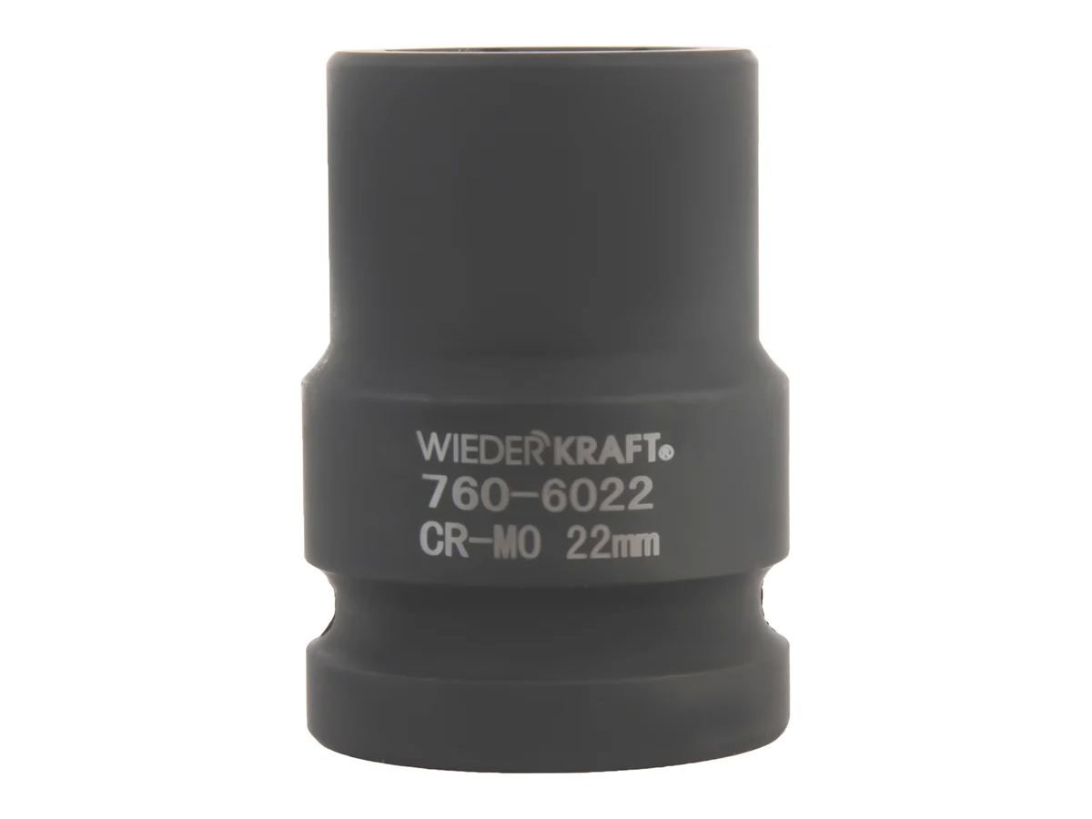 Ударная головка WiederKraft WDK-760-6022 (22 мм) с посадочным квадратом 3/4? и 6-гранным рабочим профилем. Выполнена из высококачественной хром-молибденовой стали 42 CrMo. Включения хрома и молибдена делают изделие прочным, устойчивым к нагрузкам и деформациям.