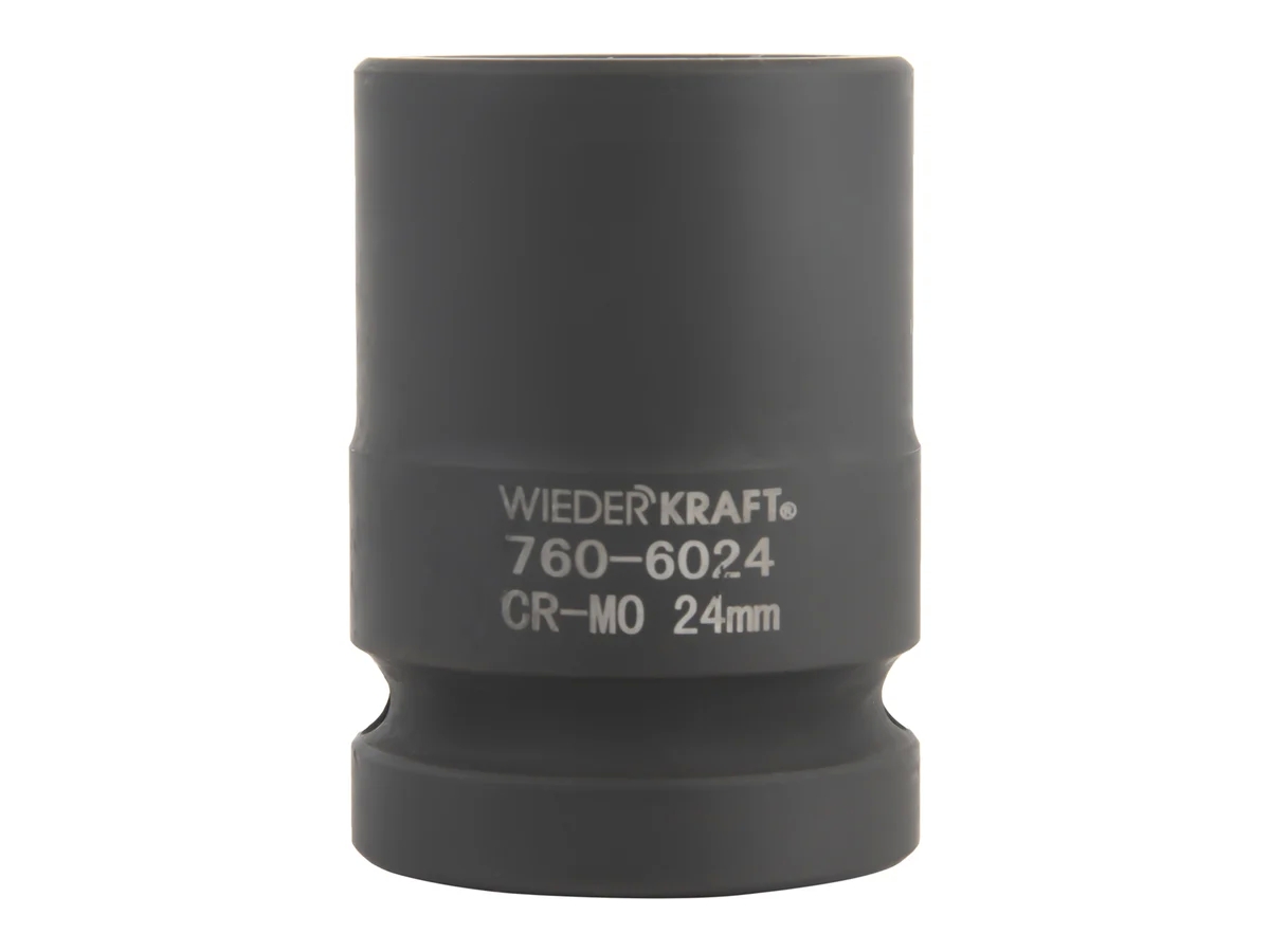 Ударная головка WiederKraft WDK-760-6024 (24 мм) с посадочным квадратом 3/4? и 6-гранным рабочим профилем. Выполнена из высококачественной хром-молибденовой стали 42 CrMo. Включения хрома и молибдена делают изделие прочным, устойчивым к нагрузкам и деформациям.