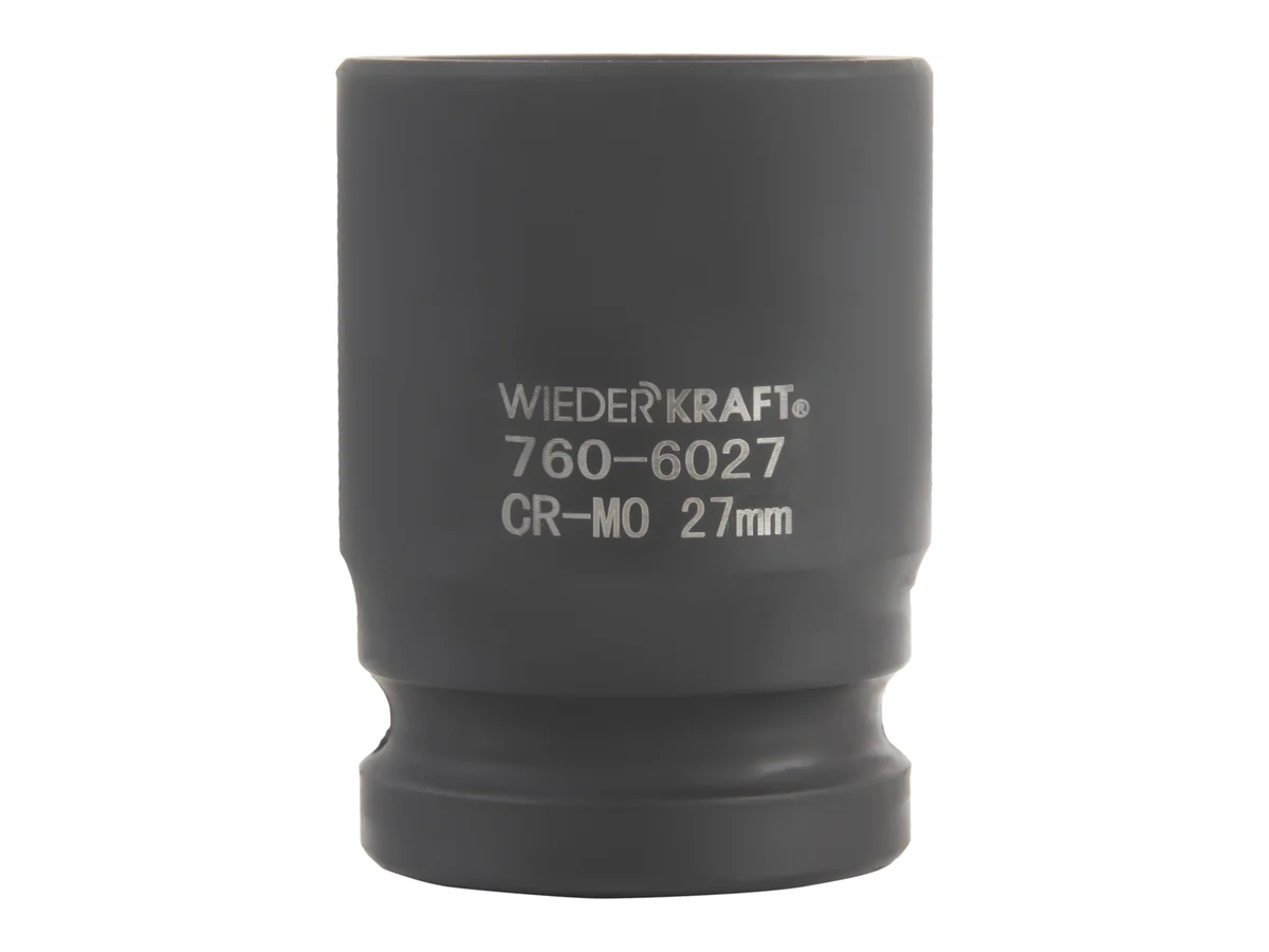 Ударная головка WiederKraft WDK-760-6027 (27 мм) с посадочным квадратом 3/4? и 6-гранным рабочим профилем. Выполнена из высококачественной хром-молибденовой стали 42 CrMo. Включения хрома и молибдена делают изделие прочным, устойчивым к нагрузкам и деформациям.