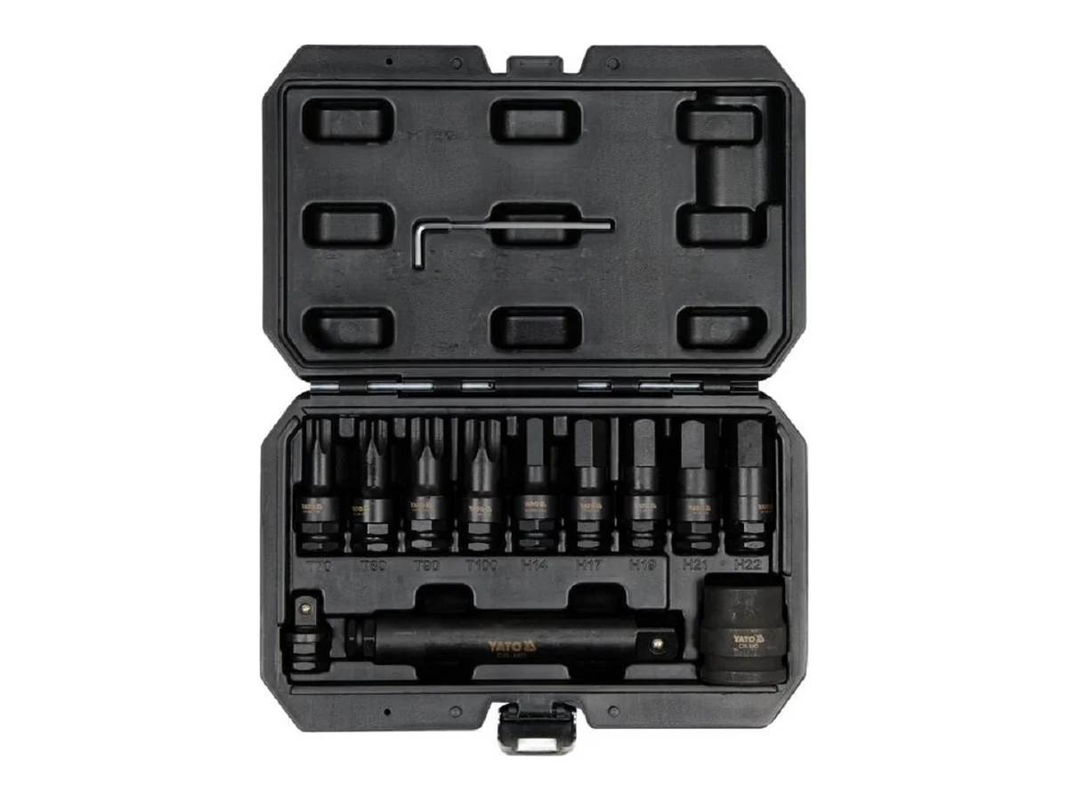 Комплект ударных головок изготовлен из материала CrMo , подойдет для эксплуатации более крупных автомобилей, строительной техники, производственной и сельскохозяйственной техники.