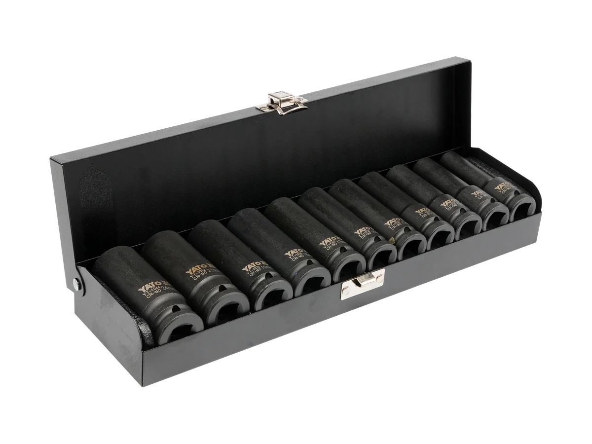 Набор торцевых ударных головок 11 шт, 10-24 мм, 1/2" YATO YT-1054. Специализированные ударные головки работают с пневматическими устройствами, работающими в очень тяжелых условиях при переменных нагрузках.