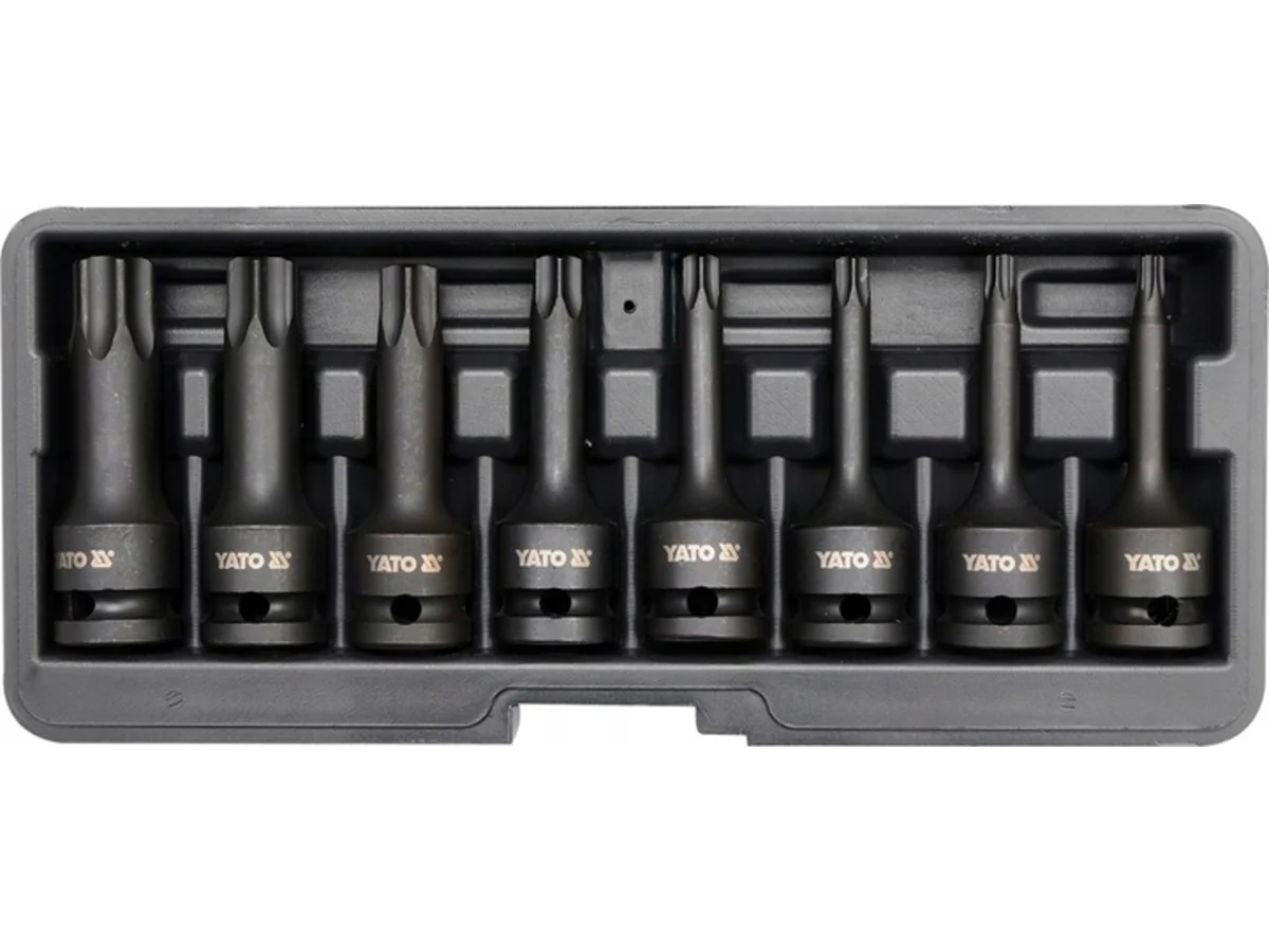 Набор ударных головок-бит TORX YATO YT-1065 предназначен для работы с саморезами, шурупами и винтами. Тип шлица TORX позволяет передавать крутящий момент без осевого давления. Биты упакованы в кассету, что удобно при эксплуатации.