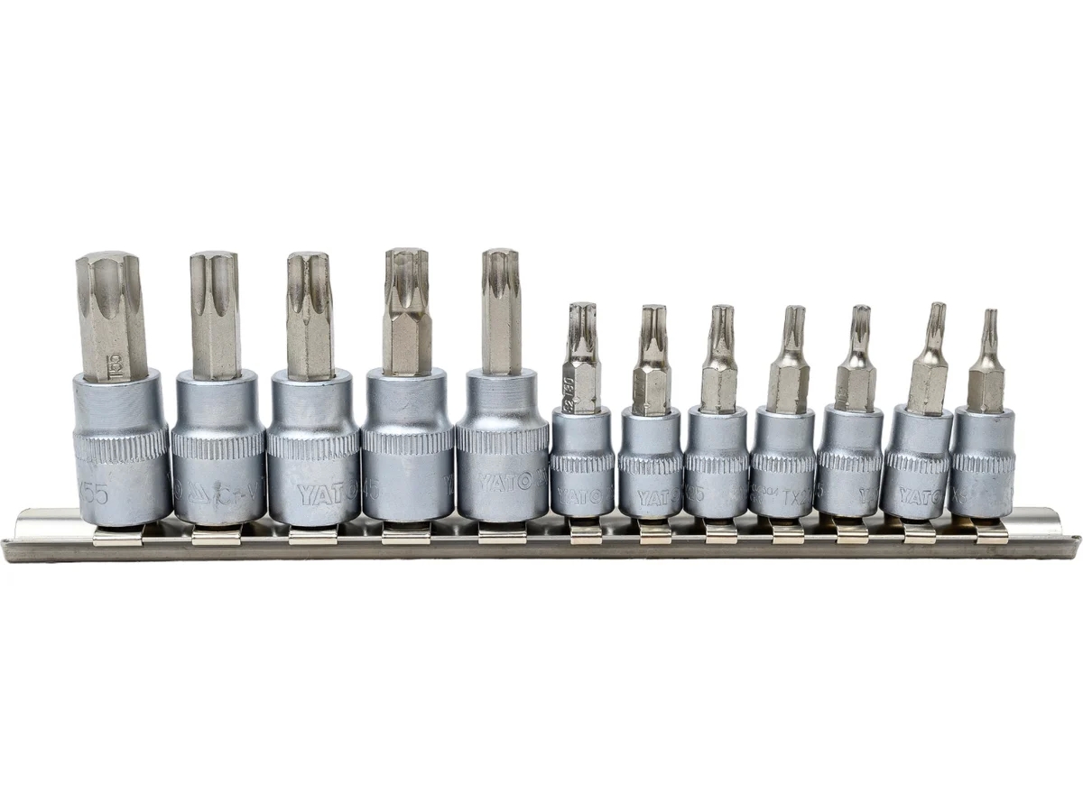 Хромированные головки изготовлены из стали CRV6150, а штифты изготовлены из стали AISI S2 и никелированы. В наборе 12 элементов. Незаменимый инструмент в автомастерской.