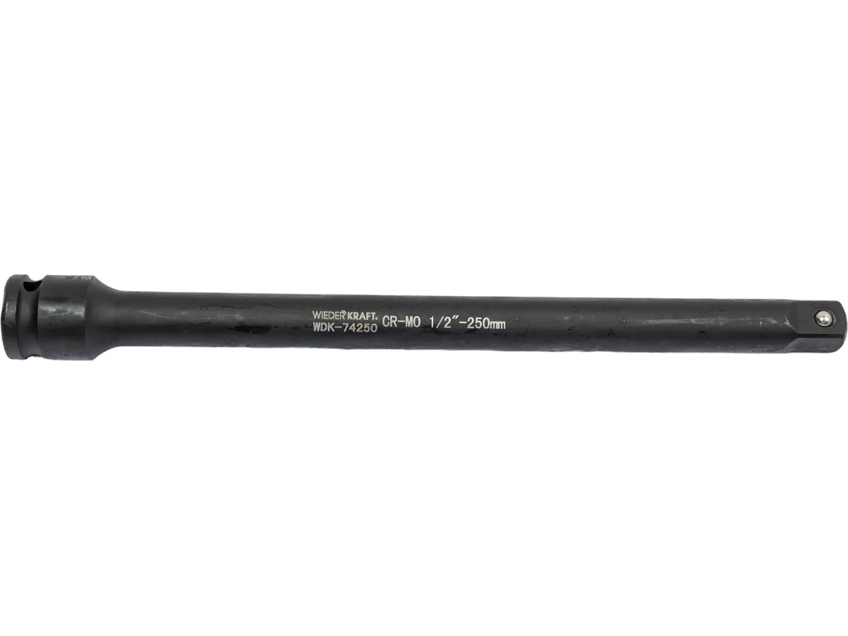 Удлинитель для ударных торцевых головок WiederKraft WDK-74250 с приводами F1/2? (мама) и M1/2? (папа). Выполнен из высококачественной хром-молибденовой стали 42 CrMo. Удлинитель имеет рабочую длину 250 мм. Включения хрома и молибдена делают изделие прочным, устойчивым к нагрузкам и деформациям.
