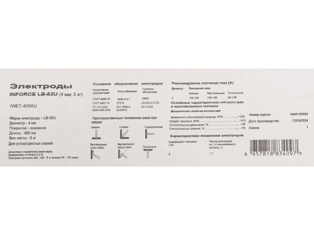 - Марка электродаLB-52U