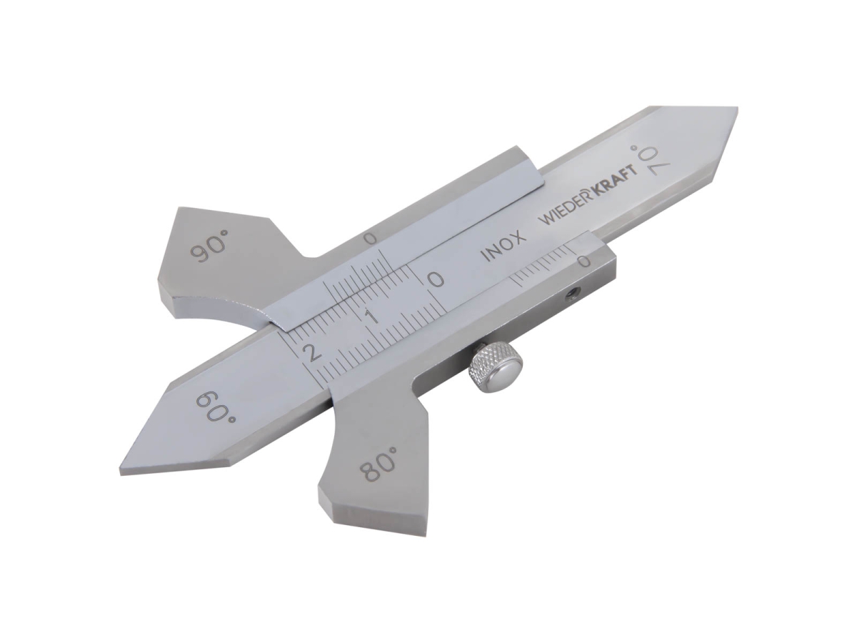 Шаблон сварщика Ушерова-Маршака WIEDERKRAFT WDK-WT2001 имеет диапазон измерений от 0 до 20 мм, точность 0,1 мм и 4 угла подготовки: 90°; 80°; 70°; 60°.