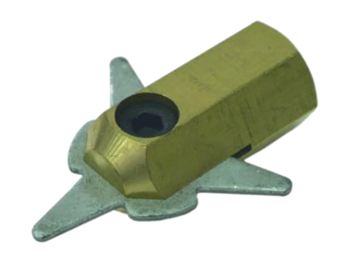 Адаптер WIEDERKRAFT F013 используется в качестве держателя для треугольного наконечника на приварочный пистолет, одновременно являясь электродом. Оснастка имеет прорезь для треугольного наконечника, винтовой фиксатор и внутреннюю резьбу для крепления к обратному молотку.