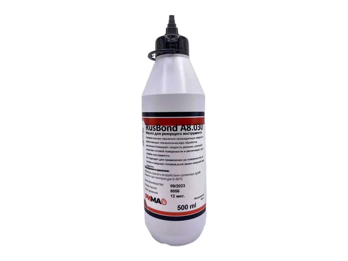 RusBond А8.030 - представляет собой минеральные масла с противозадирными присадками. Применяется для снижения износа инструмента при технологической обработке (сверление, фрезерование, шлифование, резка и т.п.).
