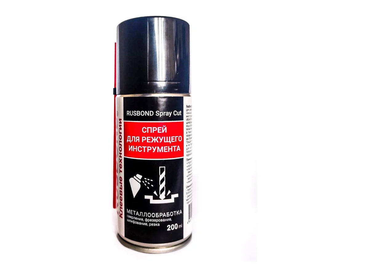 RusBond Spray Cut универсальный спрей для режущего инструмента. Применяемая для снижения износа инструмента при технологической обработки (сверление, фрезерование, шлифование, резка и т.п.). Специально подобранные компоненты продукта, позволяют повышает скорость резания, а также улучшает качество обработки поверхности и увеличивает срок службы инструментов. Продукт полностью готов к применению и не требует приготовления. Пригоден для использования на вертикальных поверхностях и на потолке за счет хорошей адгезии.