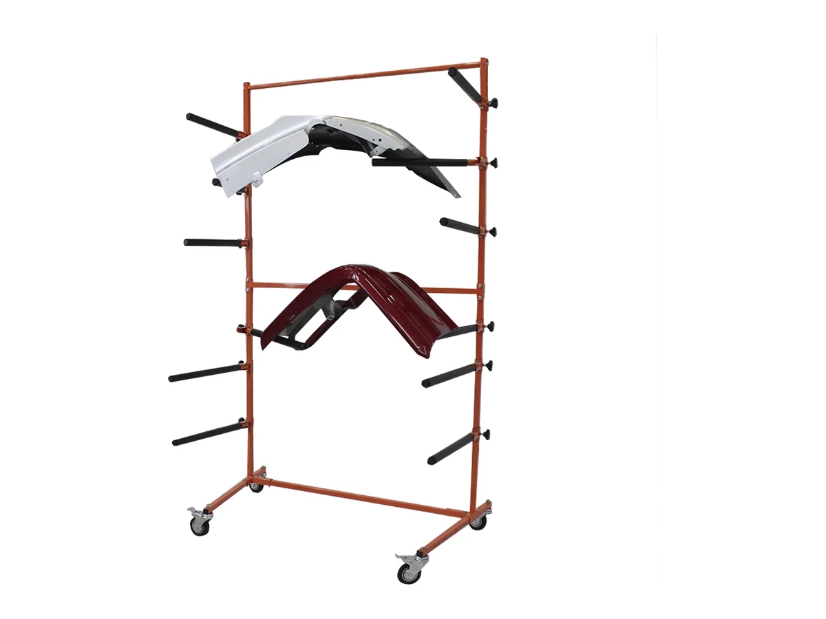 Стойка WIEDERKRAFT WDK-65140 — надежное решение для сушки и аккуратного хранения съемных элементов автомобиля, таких как бамперы, двери и крылья. Благодаря своей конструкции и мобильности (стойка оснащена 4 колесами), она позволяет легко перемещать окрашенные детали в рабочей зоне, не повреждая их поверхности.