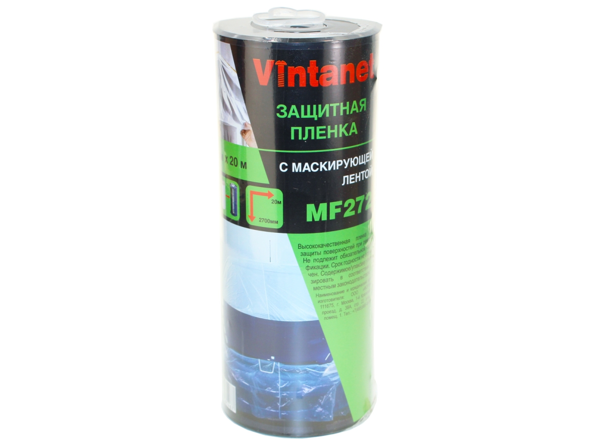 Пленка защитная с маскирующей лентой MF272 2700 мм, 20 м VINTANET MF270020 - высококачественная прозрачная пленка с маркирующей лентой для защиты поверхностей во время ремонта и при проведении покрасочных работ.