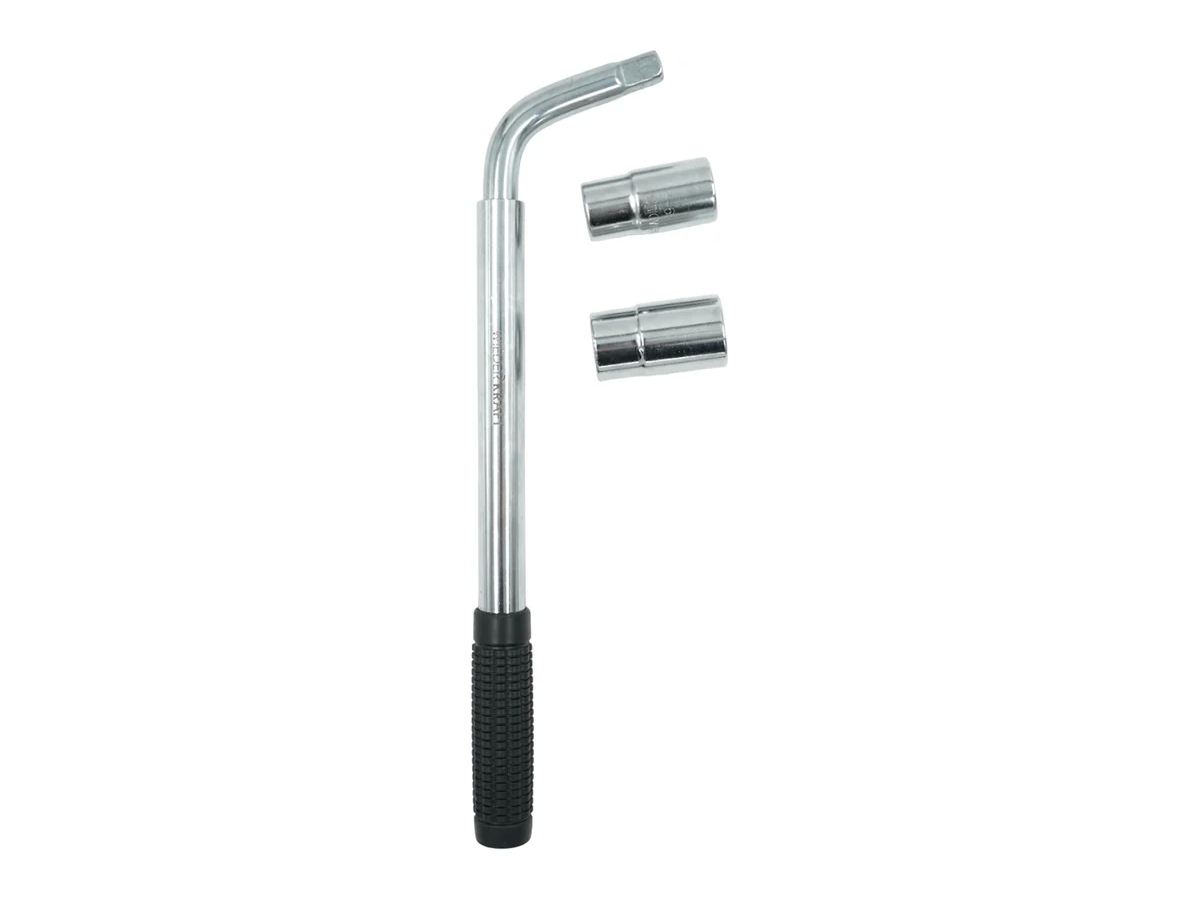 Двухсторонние головки из хромованадиевой стали размерами 17х19 мм и 21х23 мм подходят для колесного крепежа практически любых легковых автомобилей.