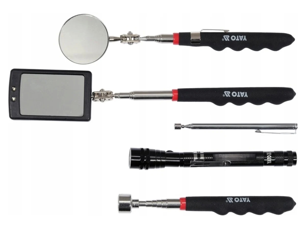 - В комплект входят: зеркало x2|захват x2|фонарик с гибким соединением