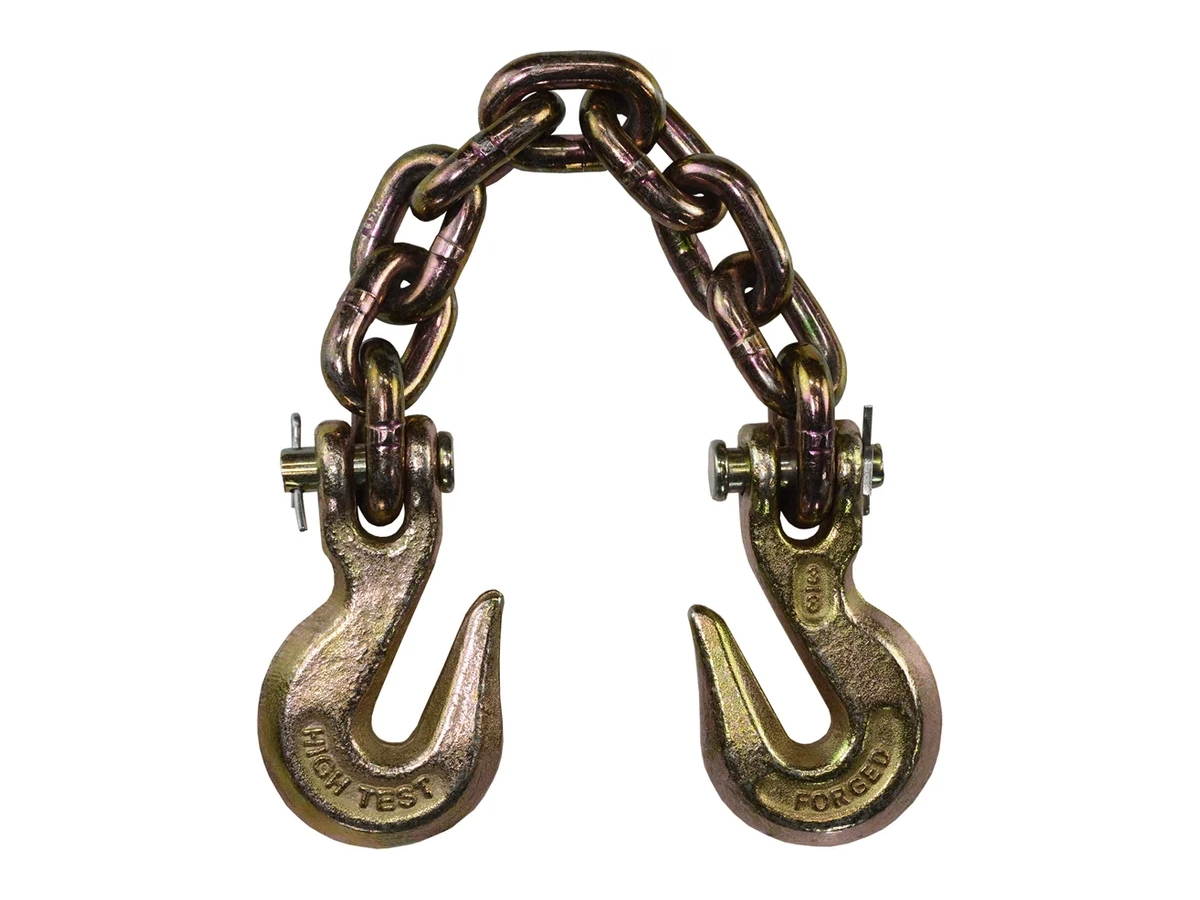 Цепь оснащена двумя прочными крюками, которые выполняют функцию захватов и обеспечивают удобное и надежное крепление к вытягиваемым элементам. Конструкция изготовлена из высокопрочного сплава, устойчивого к деформации и износу.
