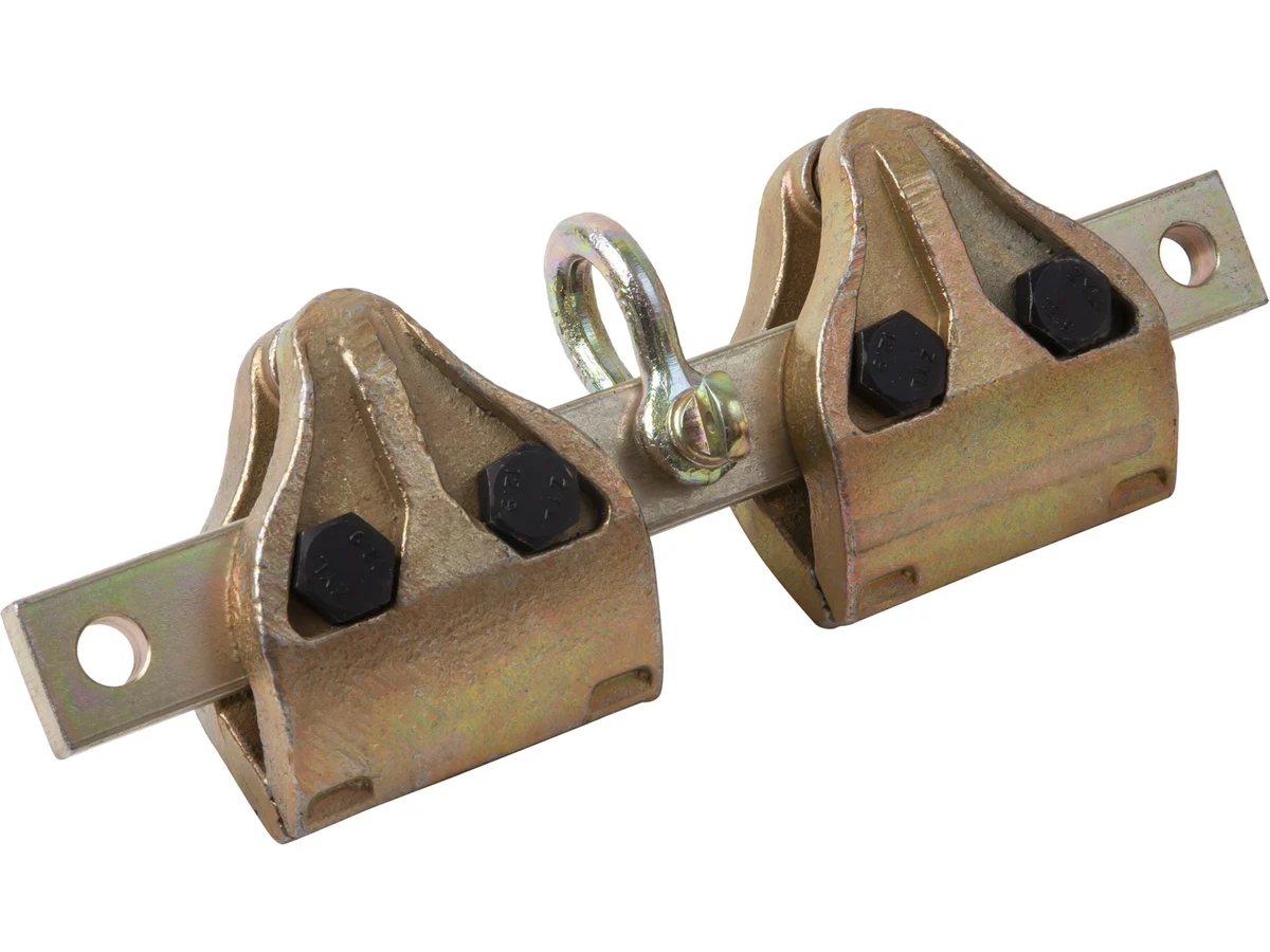 Зажим оснащен двумя зубчатыми губками и двумя серьгами, что позволяет прилагать тяговое усилие одновременно в двух направлениях. Захваты можно перемещать по основанию, добиваясь оптимального позиционирования на кузовном элементе.