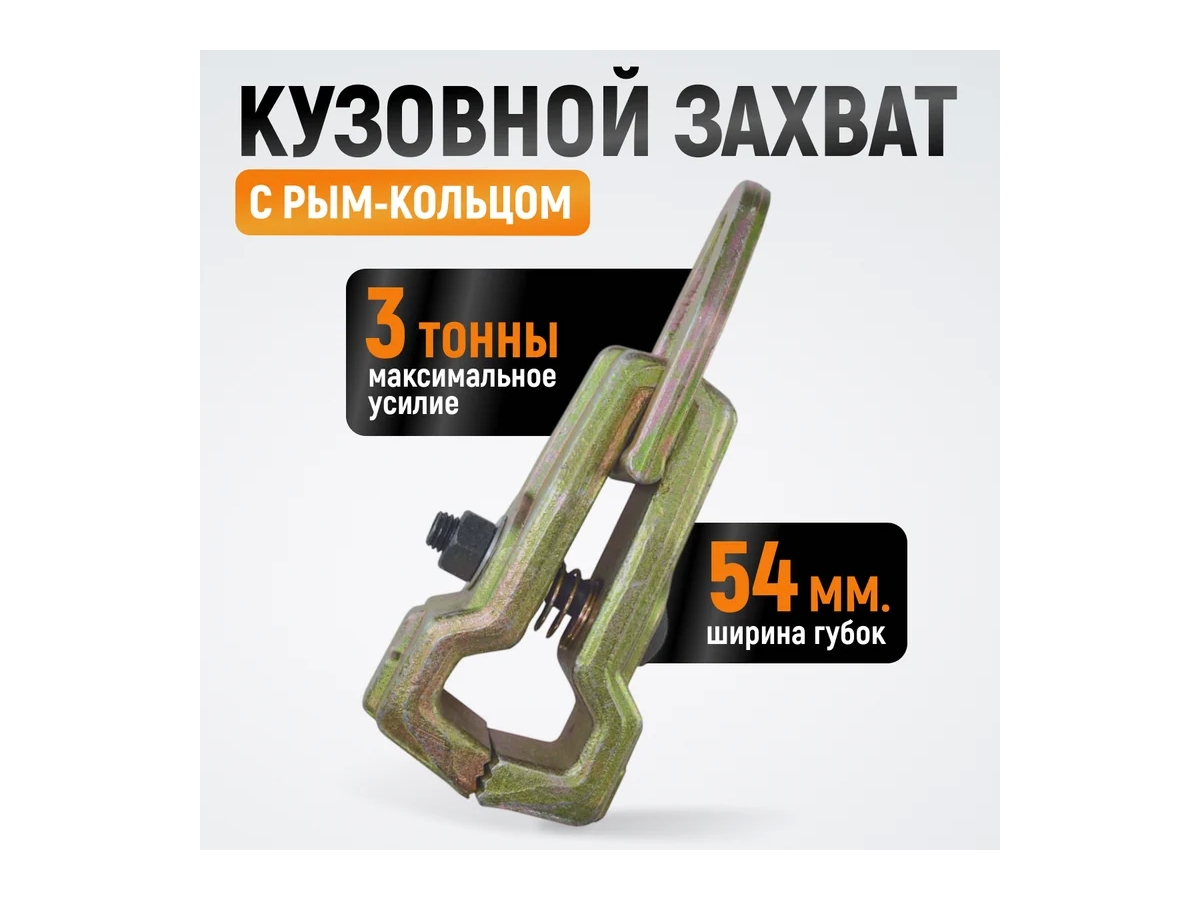 Кузовной захват WDK-0202 предназначен для выправки поврежденных кузовных элементов и восстановления геометрии автомобиля. Оснащен рым-кольцом (специальное кольцо для закладывания тросов, цепей, растяжек, блоков, талей, канифас-блоков, соединительных скоб и других крепежных элементов), что делает его универсальным инструментом не только для кузовного ремонта, но и для погрузочно-разгрузочных и логистических работ. Захват изготовлен из высокопрочных материалов, обеспечивающих надежность, износостойкость и длительный срок службы.
