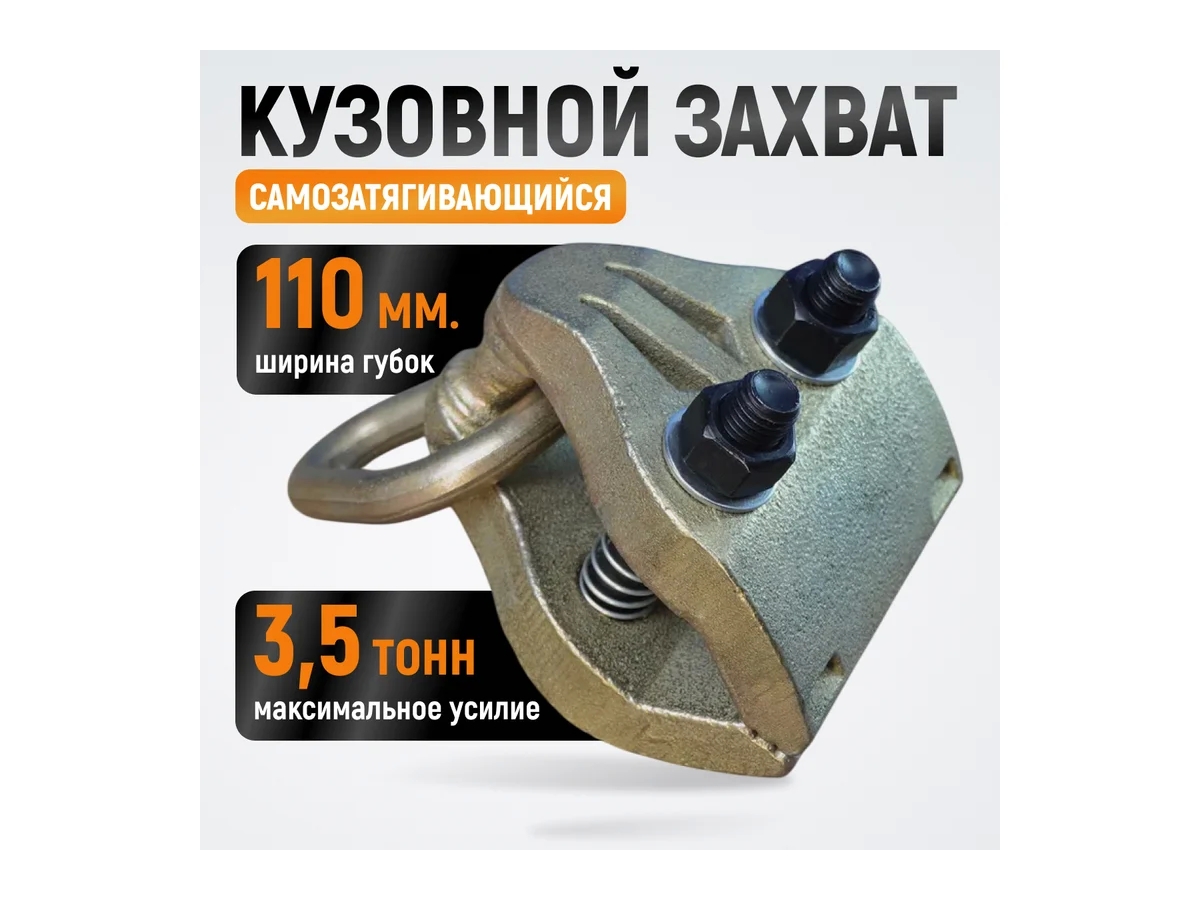 Широкий кузовной захват WDK-0206 применяется в автосервисах и на СТО для выполнения широкого спектра кузовных работ, включая вытяжку и выправку силовых элементов автомобиля. Конструкция с губками шириной 110 мм и насечкой обеспечивает прочное сцепление с деталью, а два подпружиненных болта гарантируют надежную фиксацию на кузовном элементе. Тяговое кольцо позволяет быстро и удобно подключать растяжки или цепи.