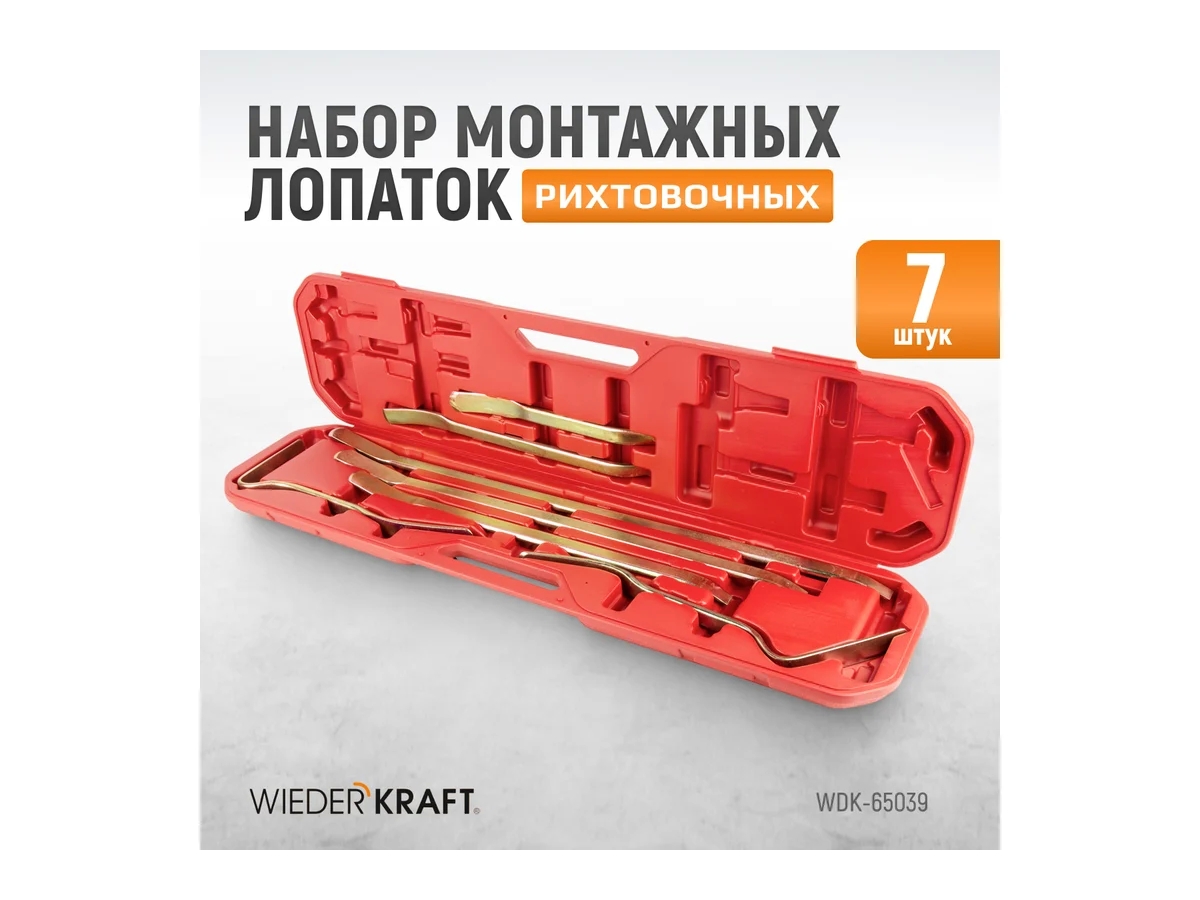 Набор рихтовочных монтажных лопаток в пластиковом кейсе WIEDERKRAFT WDK-65039 предназначен для использования в слесарных и кузовных работах для выправки или отгибания поврежденных участков. В комплекте 7 рихтовочных лопаток различной формы. Корпус инструментов изготовлен из прочной стали с защитным покрытием. Пластиковый кейс служит для хранения.