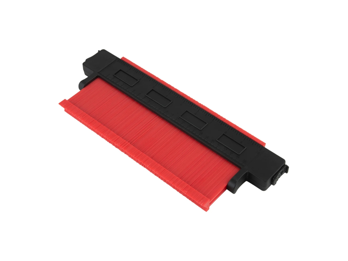 Для точного копирования контура необходимо плотно прижать инструмент зубьями к объекту замера, чтобы он полностью повторил поверхность, зафиксировать контур, а затем перенесите его на заготовленный материал. Идеально подходит для укладки плитки, ламината, ковровых покрытий, проверки размеров и контура и т. д.