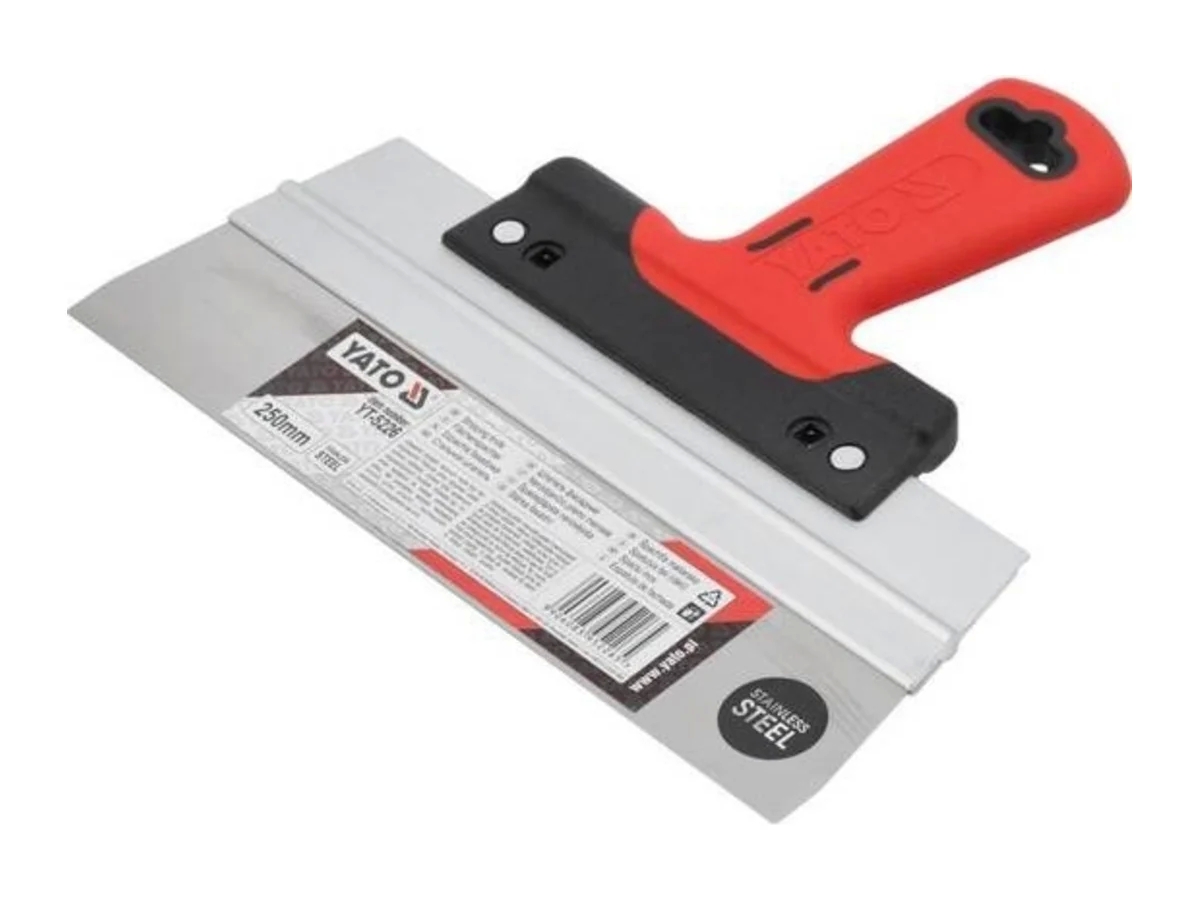 Фасадный шпатель YATO 250 мм, нержавеющая сталь YT-5226 используется для штукатурно-отделочных работ. Рабочая часть изготовлена из специальной холоднокатаной нержавеющей стали с упругостью до 2000 Н/мм².