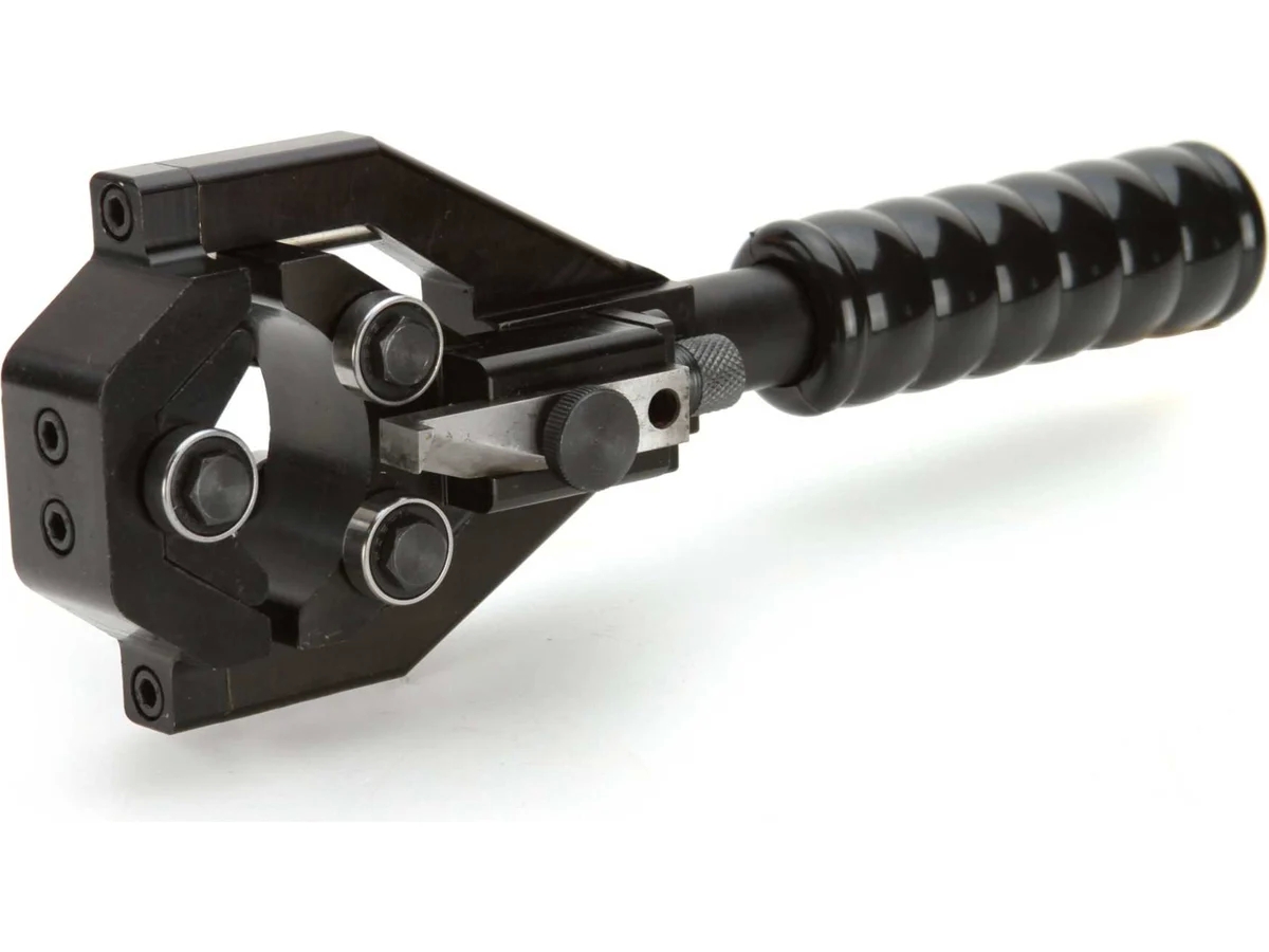 Кабель зажимается за счет вращающейся рукоятки. Ручка инструмента удобно располагается в ладони и не выскальзывает. Снятие изолирующего материала осуществляется как под прямым углом, так и на конус.