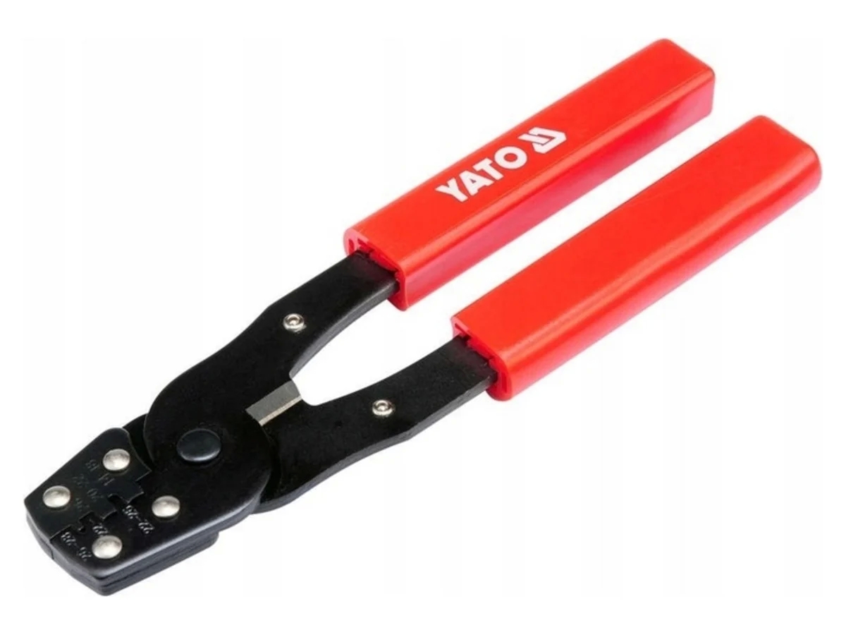 Клещи YT-2255 для обжима двух типов разъемов, с черненой поверхностью, защищающей от коррозии, и пластиковыми накладками на рукоятки.