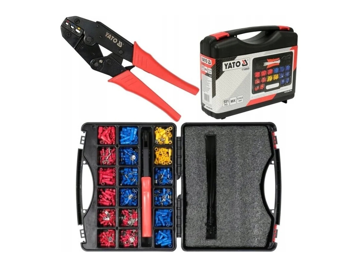 Набор для обжимного инструмента YATO YT-068920 с храповым механизмом для обжима разъемов, кабельных наконечников, плоских вилок, плоских разъемов, кабельных муфт, пластиковых стяжек.