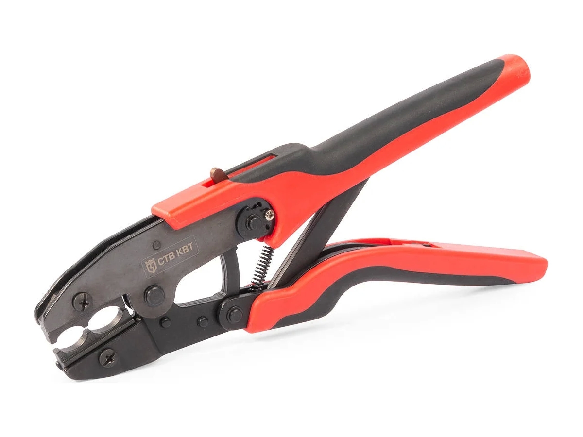 Пресс-клещи КВТ CTB-07 66260 - это удобное приспособление для опрессовки изолированных наконечников и гильз с удлиненной рукояткой, которая изготовлена из нескользящей термопластрезины. Кримплер оснащен храповым механизмом, устройством его разблокировки, регулятором прижимного усилия. Рабочая часть обработана воронением и выполнена из стали толщиной 3 мм.