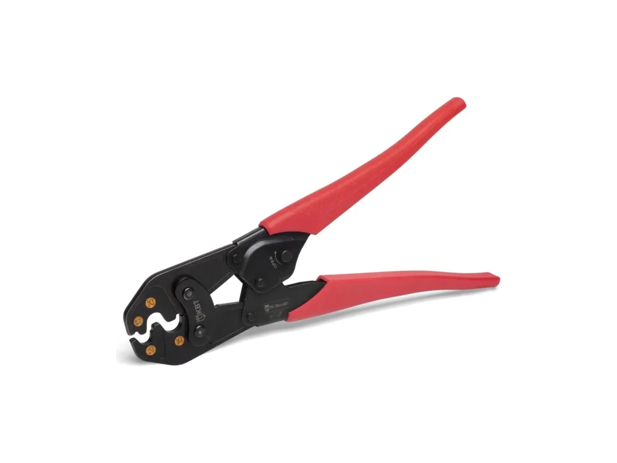 Инструмент оснащен накладками на рукоятках, которые обеспечивают эффективный обжим при минимальных усилиях. Есть винт для экстренной разблокировки.