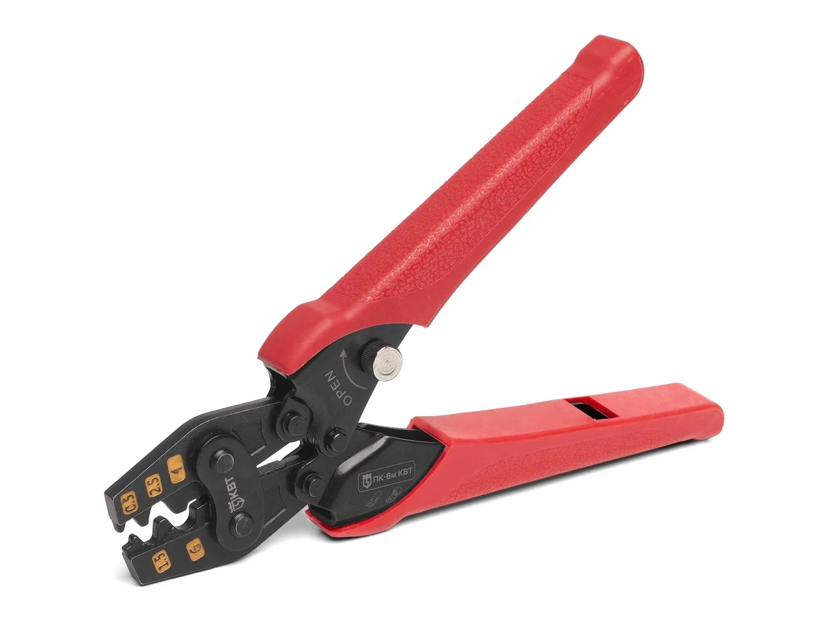 Пресс-клещи КВТ ПК-6м 78865 удобны в использовании за счет использования прочных накладок и храповика.