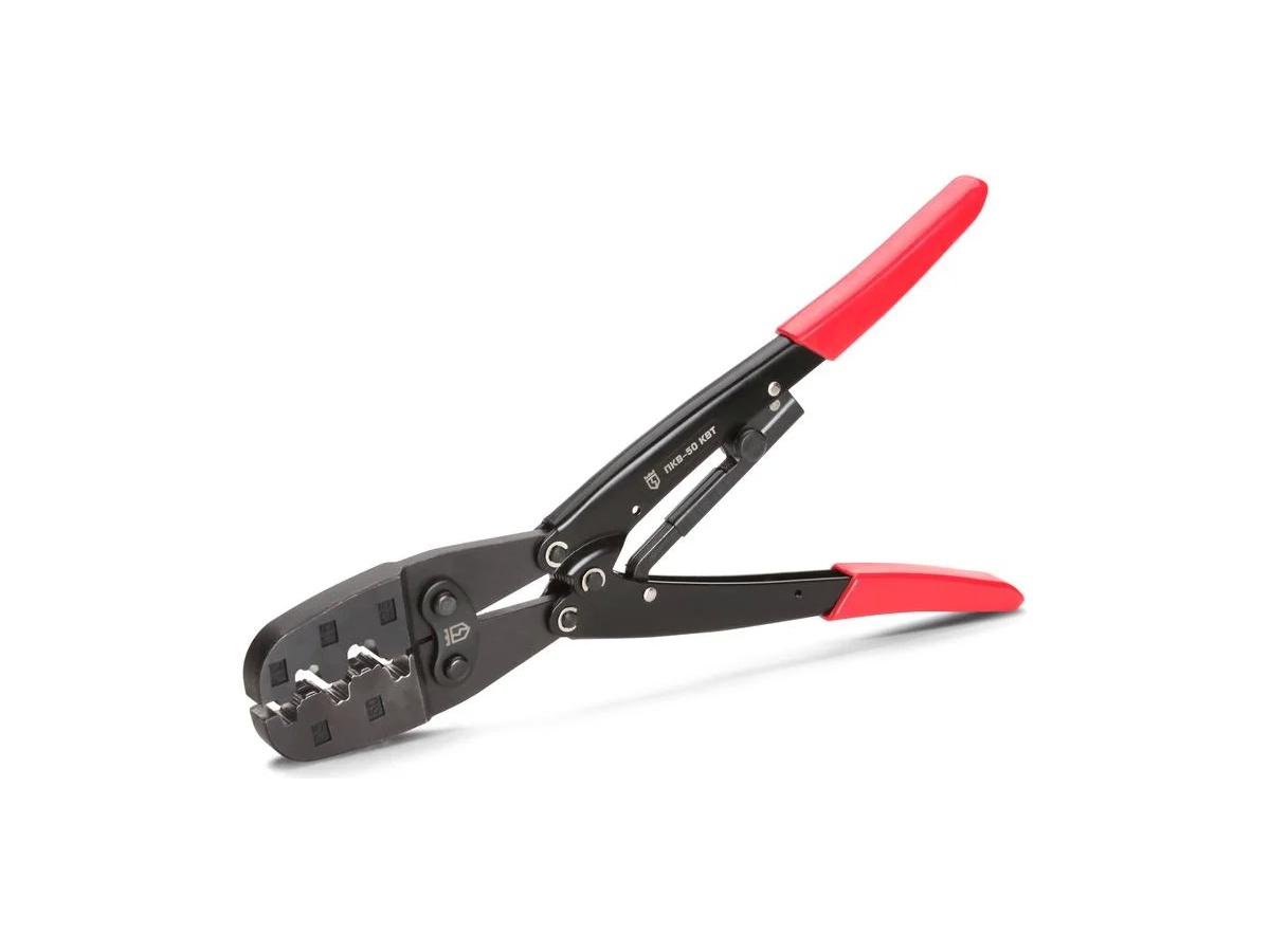 Пресс-клещи КВТ ПКВ-50 74596 используются для работы с втулочными наконечниками. Инструмент обладает удобной формой, рукоятками оптимальной длины и системой автоматического раскрытия рукояток после выполнения операции обжима. Широкие чехлы на рукоятках обеспечивают удобство при длительной работе. Усиленная головка полностью передает усилие, что позволяет эффективно обжимать наконечники с сечением до 50 мм. Небольшой вес также положительно сказывается на результативности работы.