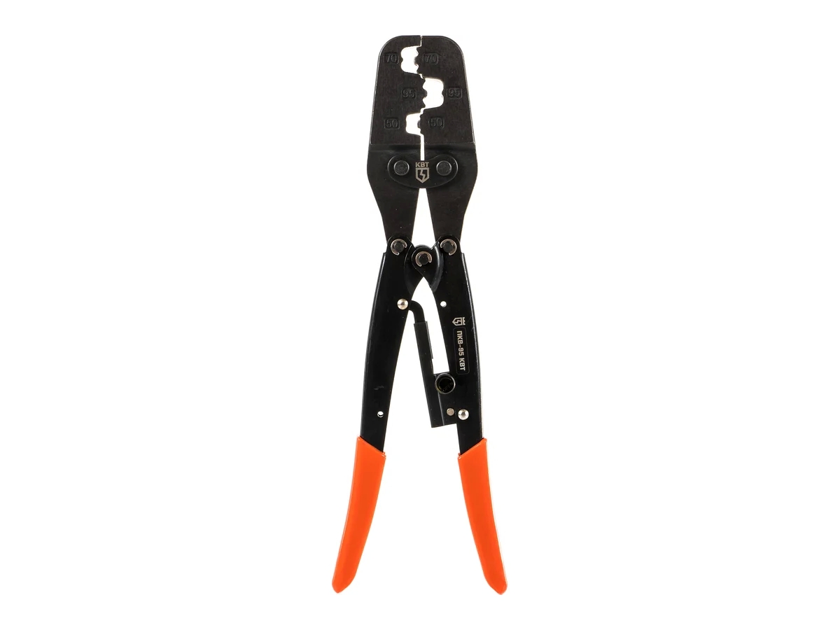 Пресс-клещи КВТ ПКВ-95 74597 является профессиональным инструментом для опрессовки одинарных и двойных втулочных наконечников на многожильные медные провода. Данная модель работает с тремя типоразмерами НШВИ, НШВ: 50, 70 и 95 мм². За счет храпового механизма осуществляется полный цикл опрессовки.