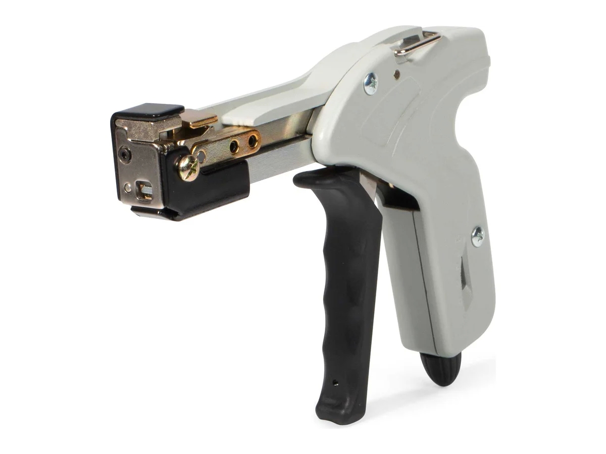 Инструмент для монтажа стальных стяжек КВТ TG-05 63732 оснащен бесступенчатой регулировкой усилия затяжки и автоматической обрезкой стяжки. Изделие предназначено для монтажа стяжек из нержавеющей стали шириной 4,6-7,9 мм. Конструкция отличается износостойкостью, имеет пистолетную форму и литой металлический корпус.