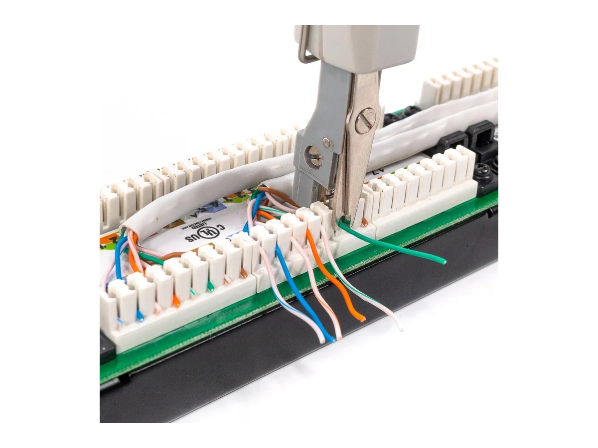 Инструмент для заделки витой пары КВТ PD-01 85736 используется для заделки и обрезки проводников во врезные контакты на кроссах, патч-панелях, розетках и модулях, заделка контактов 110 типа и типа KRONE. Металлические детали инструмента выполнены из качественной инструментальной стали, что обеспечивает прочность и долговечность. Изделие оснащено встроенным ножом с функцией обрезки, а также встроенным комбинированным крючком и плунжером. Конструкцией предусмотрены фиксаторы для удобного извлечения крючка и плунжера.