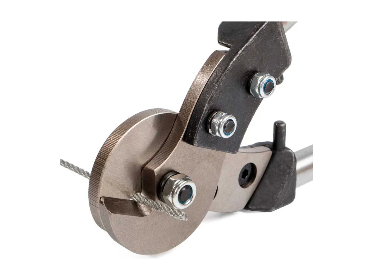 Тросорез КВТ ТР-8Т 67270 - это инструмент для резки прутков из стали и стальных тросов. Изделие оснащено телескопическими рукоятками, которые фиксируются в каждом положении и оснащены стопорными упорами. Лезвия со специальной формой заточки изготовлено из хромомолибденовой стали. Для долговечности службы и хранения тросорез упакован в водозащитную сумку.