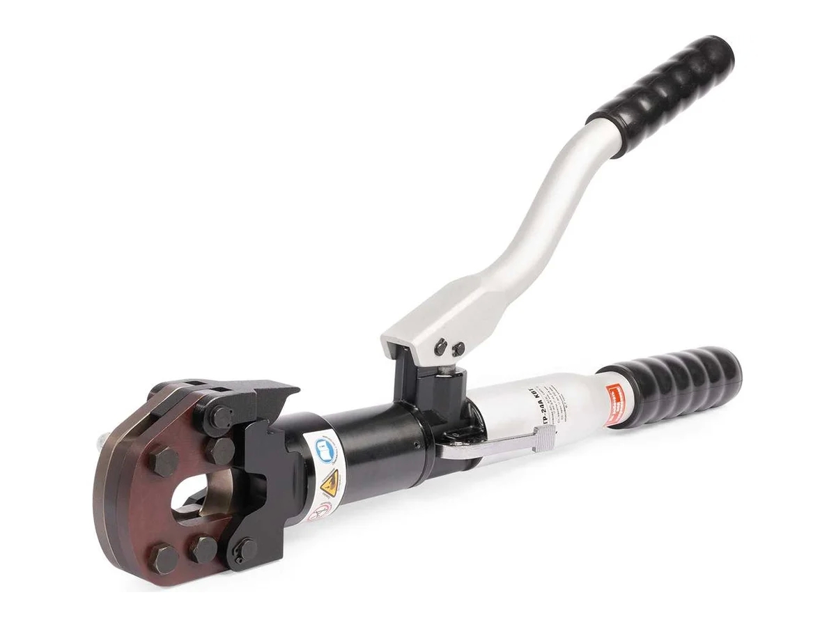 Гидравлические ручные ножницы КВТ НГР-24A 76563 являются надежным и незаменимым помощником для резки стальных канатов, проводов АС и бронированных кабелей. Конструкция выполнена из прочных материалов: лезвия из хром-молибденовая стали повышенной твердости HRC 58-62, гидроцилиндр и рукоятки выполнены из легкого алюминиевого сплава В95. Благодаря этому, инструмент с легкостью справится с разрезанием проводов АС, АСК, СИП-3 ∅ до 24 мм, стальных тросов: 1х7, 1х19, 1х37 – ∅ до 20 мм, 6х7 – ∅ до 24 мм, 6х19, 6х37 – ∅ до 24 мм, прутков из низкоуглеродистой стали ∅ до 16 мм, кабелей с ленточной броней ∅ до 24 мм.