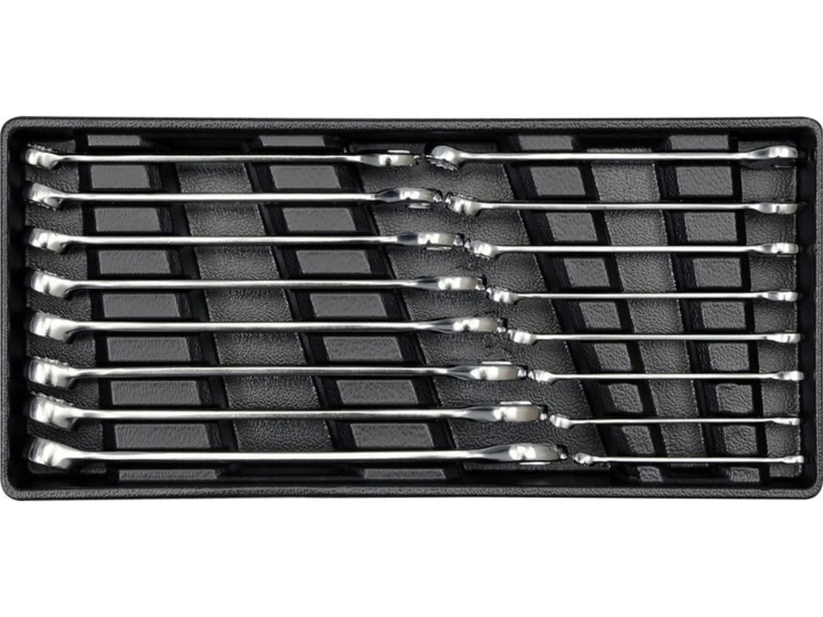 Ложемент для выдвижного ящика предназначен для хранения инструментов в инструментальной тележке. Ложемент выполнен из прочного износостойкого материала, что обеспечивает долгий срок службы. Изделие также можно использовать как отдельное место хранения инструментов в мастерской. Включает набор ключей из 16 предметов.