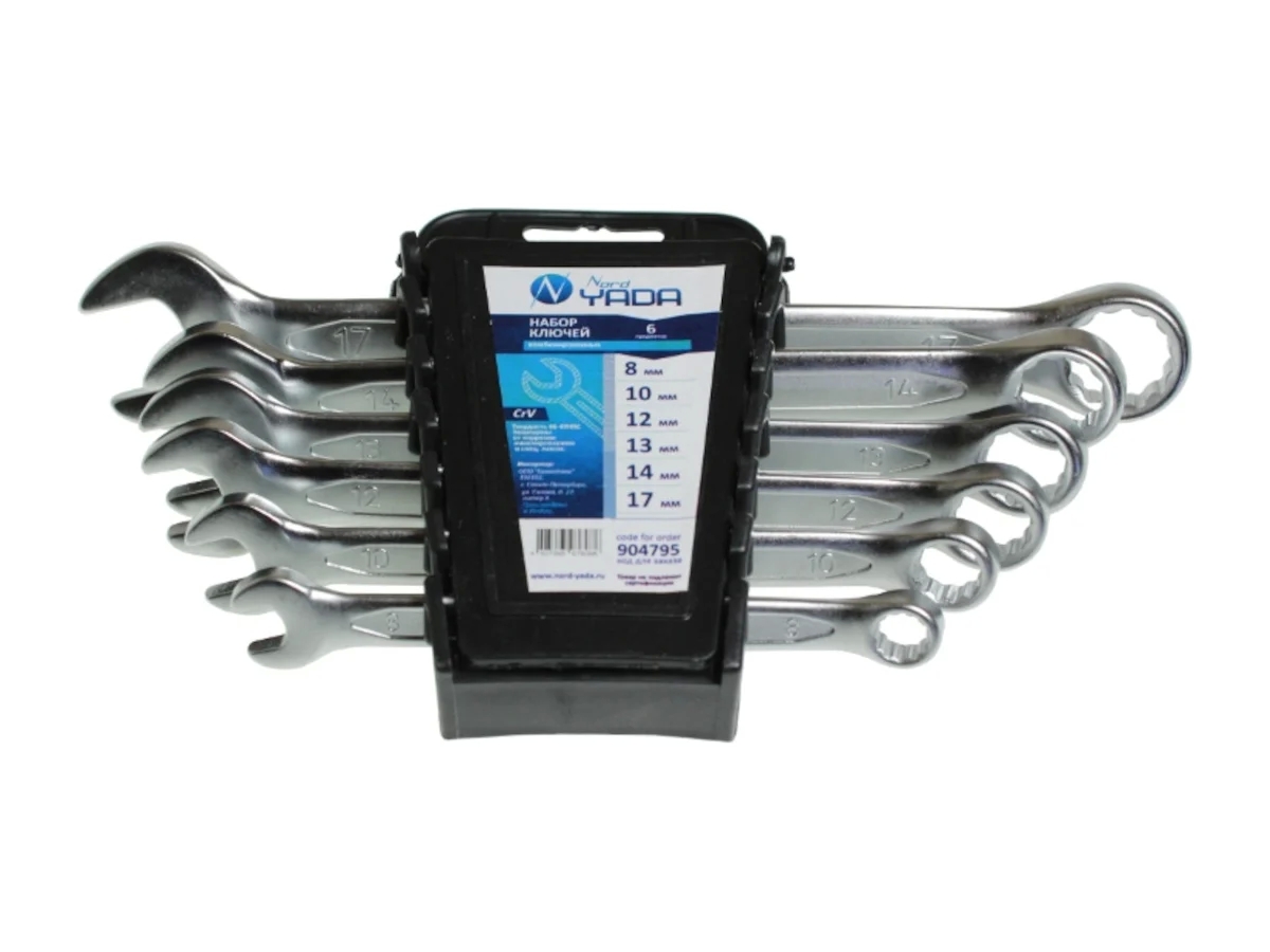 Набор комбинированных ключей Nord-Yada 6 пр: 8, 10, 12, 13, 14, 17 мм холдер TM Nord YADA 904795 представляет собой набор качественного ручного инструмента, предназначенного для работ с крепежом при монтажных и ремонтных работах. Инструмент может применяться в бытовой и профессиональной сферах.