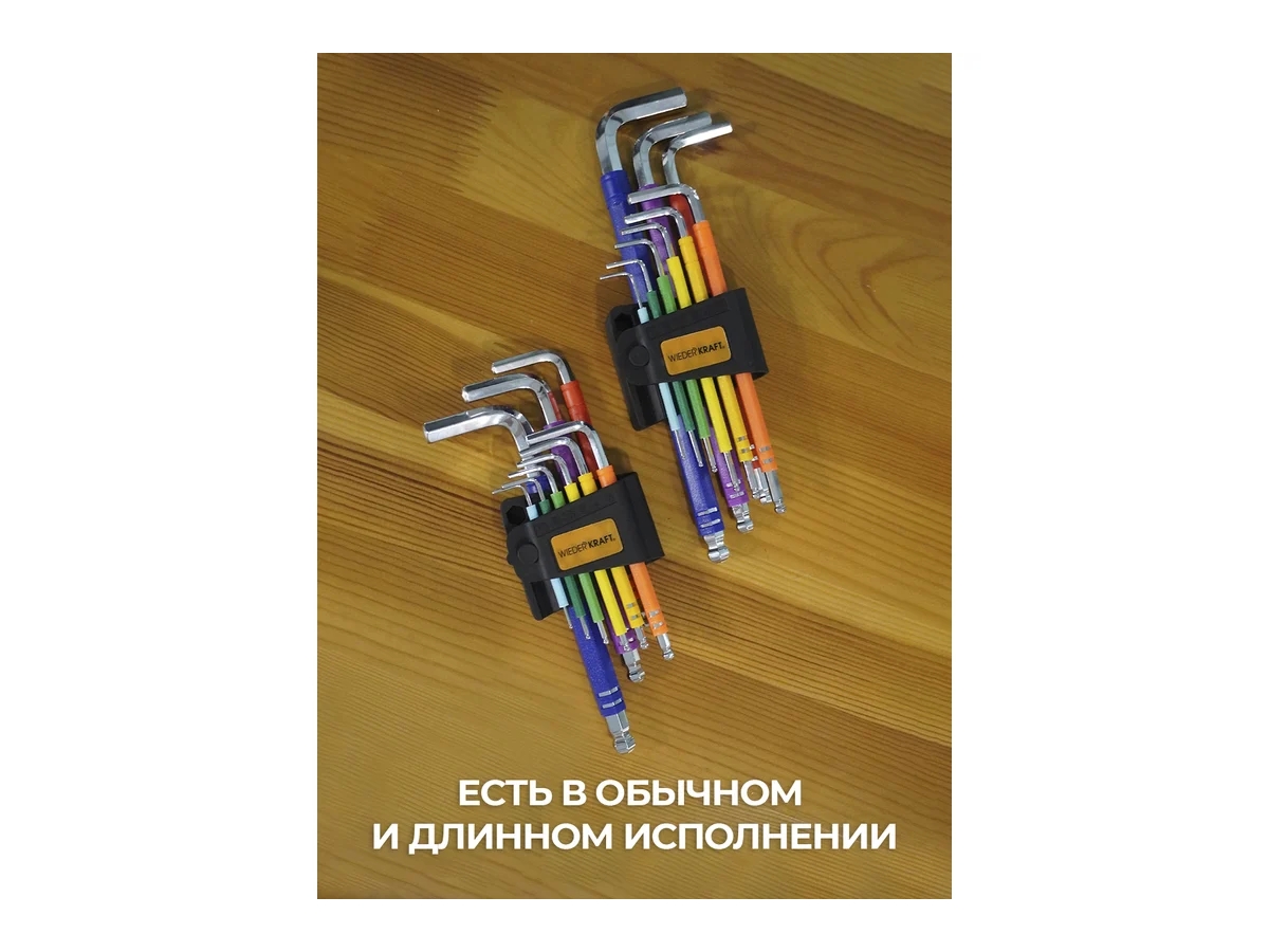 Комплект включает 9 ключей разных размеров (1,5 мм, 2 мм, 2,5 мм, 3 мм, 4 мм, 5 мм, 6 мм, 8 мм, 10 мм), что делает его подходящим для различных задач.
