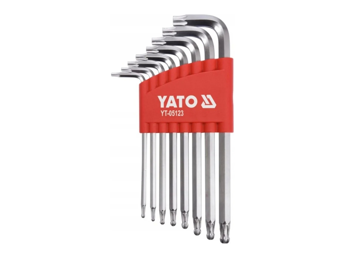 Набор торцовых ключей YATO TORX Т9-Т40, с шаром, CV, 8 предметов YT-05123 предназначен для промышленных, мастерских и сервисных приложений. Содержит 8 ключей размером от Т9 до Т40. Ключи изготовлены из высококачественной хромованадиевой стали, что обеспечивает прочность и долговечность. Сферический наконечник позволяет работать под углом и при затрудненном доступе к резьбе. Увеличенная поверхность контакта сферического наконечника с раструбом позволяет добиться лучшего эффекта затяжки и избежать деформации соединений.
