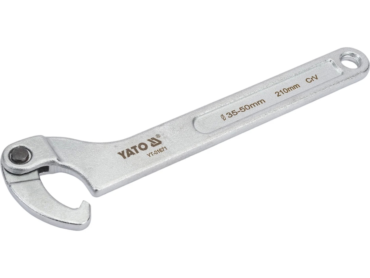 Сегментный шарнирный ключ YATO 35-50 мм, с крючком YT-01671 выполнен из прочного хромо-ванадиевого сплава.