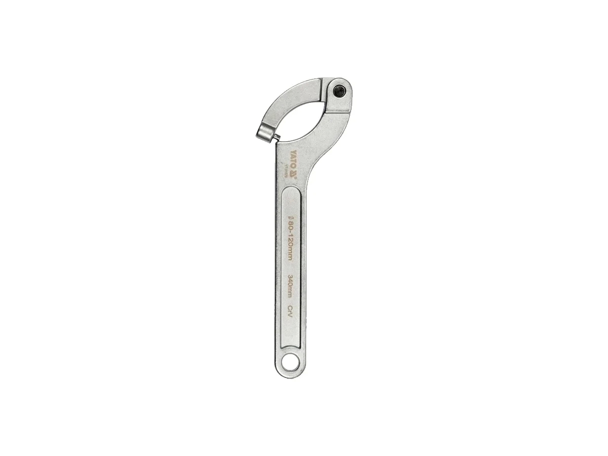 Ключ сегментный шарнирный80-120 мм., изготовлен из прочной хромованадиевой стали CrV. Имеет матовую хромированную поверхность. Предназначен для шлицевых круглых гаек.