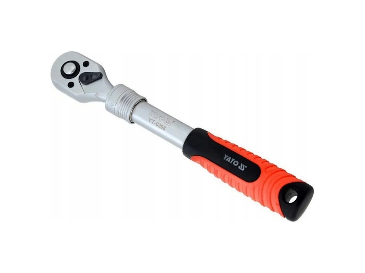 Трещотка YATO телескопическая, 3/8" YT-0298 имеет рабочий механизм удлинения рычага, что позволяет увеличить усилие и крутящий момент. Храповой механизм изготовлен из легированной инструментальной стали CrV 6135, имеет эргономичную рукоятку из двухкомпонентного материала TPR и храповой механизм с 72 зубьями, с рабочим ходом 5'. Кроме того, трещотка оснащена системой быстрого сброса, которая обеспечивает надежный захват колпачка и легкое освобождение.