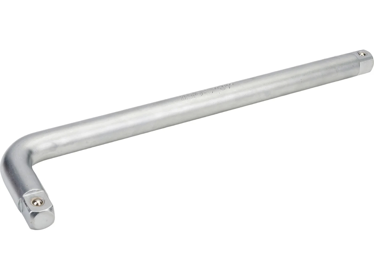 Вороток L-Типа 3/4 дюйма 400X100мм YATO YT-13475 оснащается двумя посадочными квадратами на обоих сторонах инструмента. Преимущество конструкции заключается в возможности работать со сложным и тугим крепежом. Толщина инструмент составляет 25 мм.